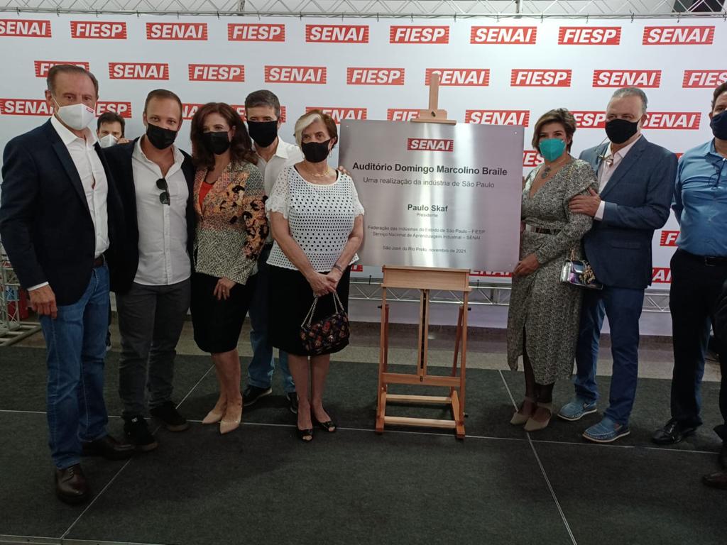 O segundo compromisso de Skaf em Rio Preto foi na Escola Senai Antonio Devisate, onde o presidente designou como patrono do auditório “Domingo Marcolino Braile”, um dos pioneiros da cirurgia cardíaca no interior do Brasil. Fundador da Braile Biomédica e do Instituto Domingo Braile, era inventor de dispositivos e equipamentos cardíacos. O homenageado faleceu aos 81 anos, em março de 2020. "Meu pai era um engenheiro, um mecânico. E o coração nada mais é que uma bomba. De certa forma, ele é colega de trabalho de vocês. A grande alegria dele era estar envolvido com torno, fresa, furadeira e na eletricidade", revelou Patrícia Braile, filha do patrono.