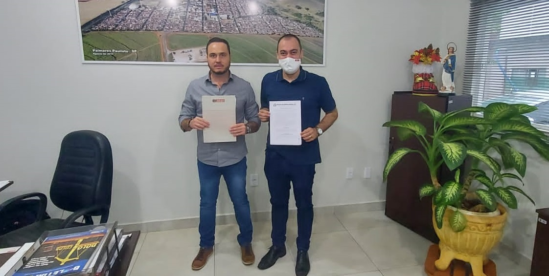 O prefeito de Palmares Paulista, Lucas Assumção e o Coordenador de Relações com a Indústria e Comunidade do Sesi São José do Rio Preto, Diego Soares.